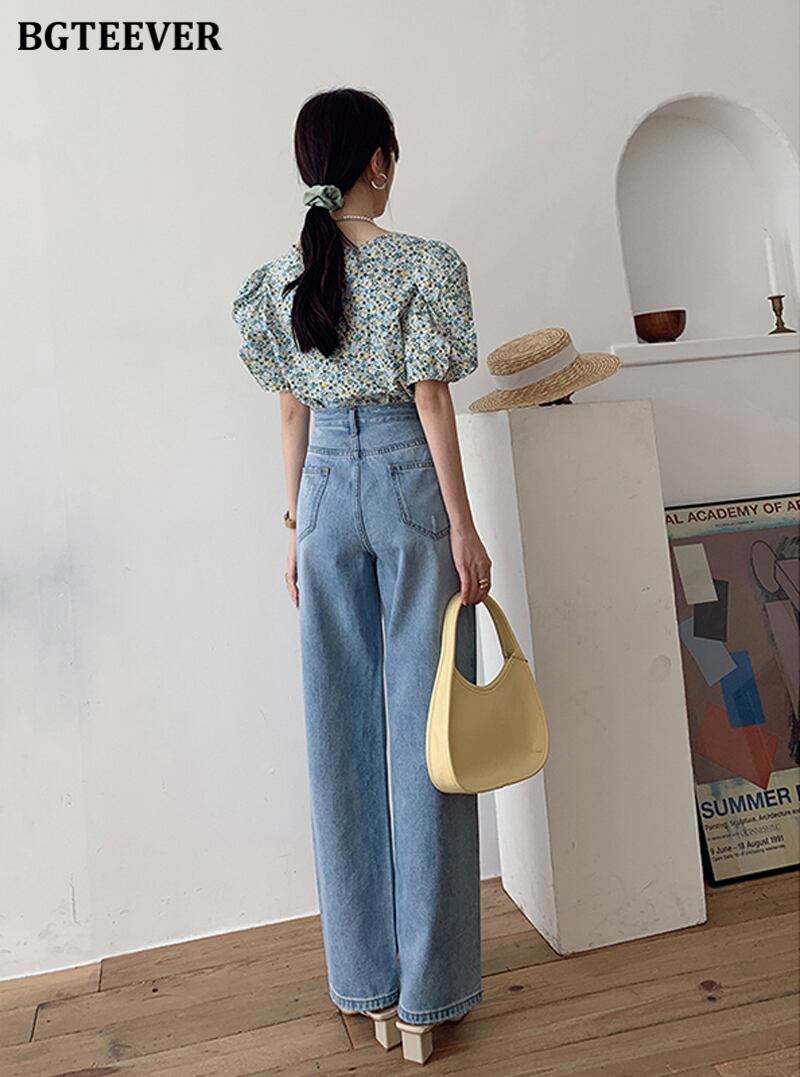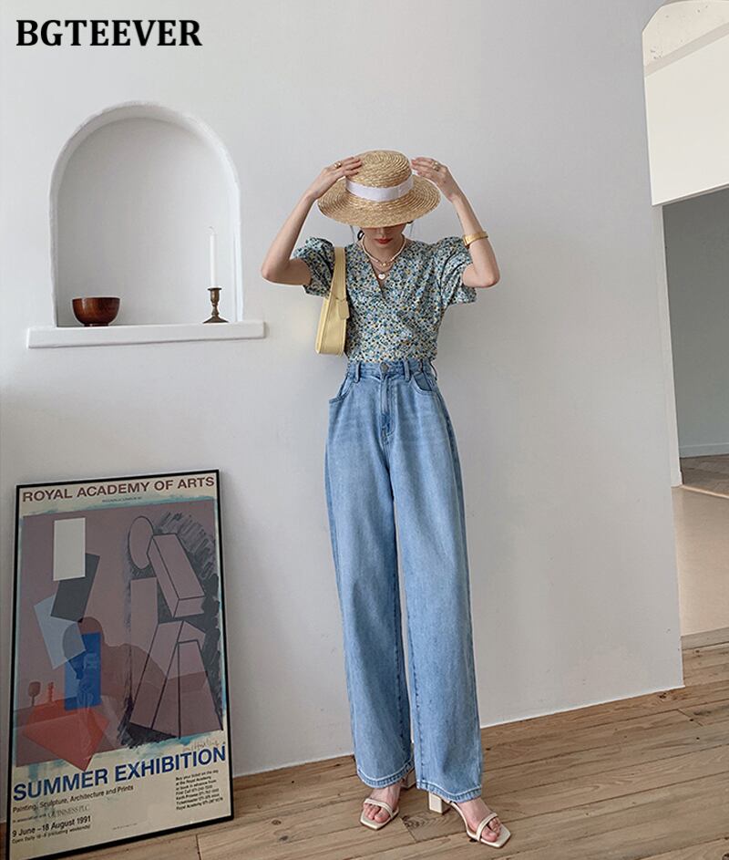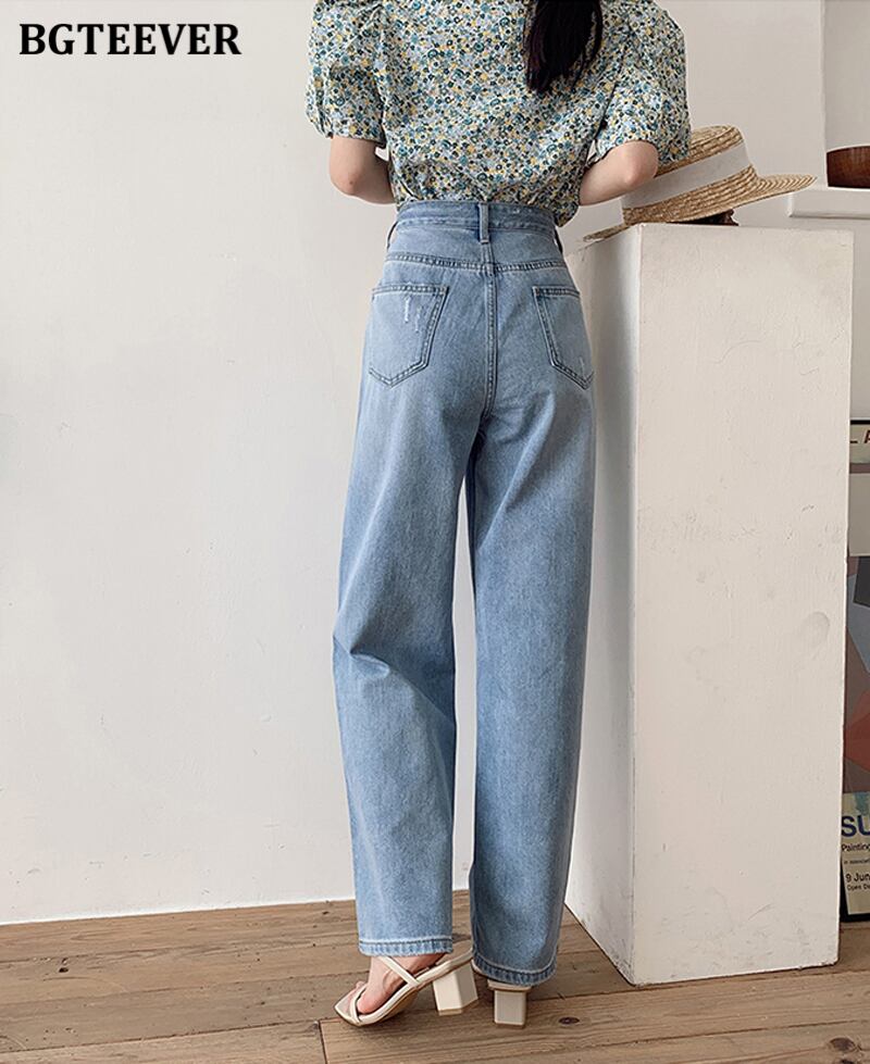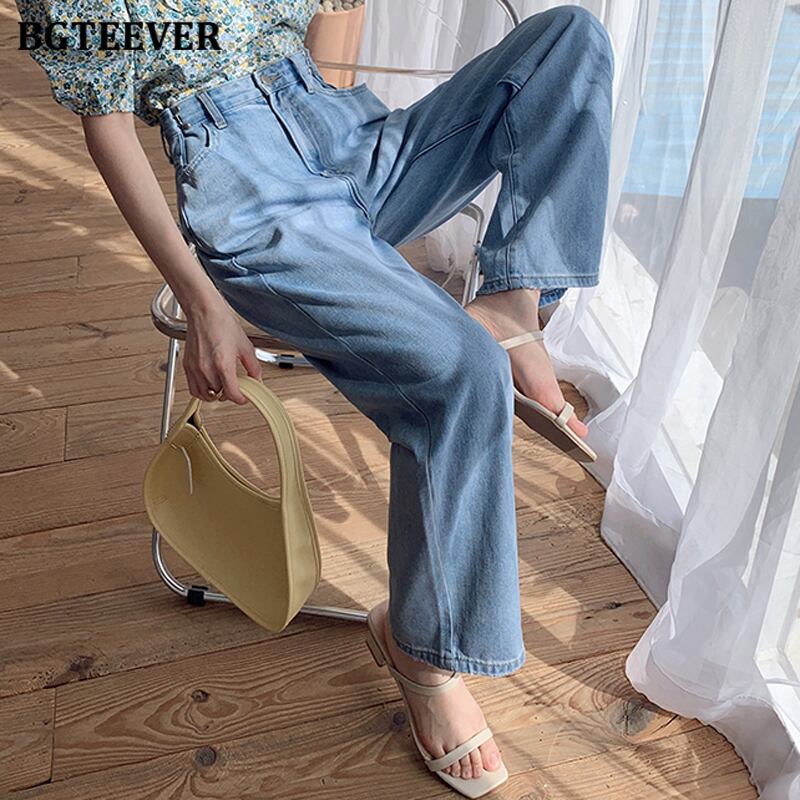【新作】【送料無料】 BGTEEVERストリートウェアレディースポケットデニムフロアレングスパンツウエストルーズストレートジーンズ2021春パンタロン スプリング 春物 12b121282052922