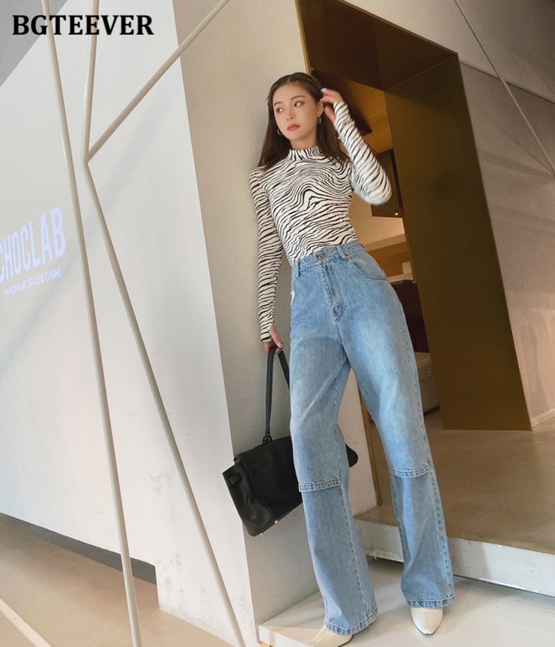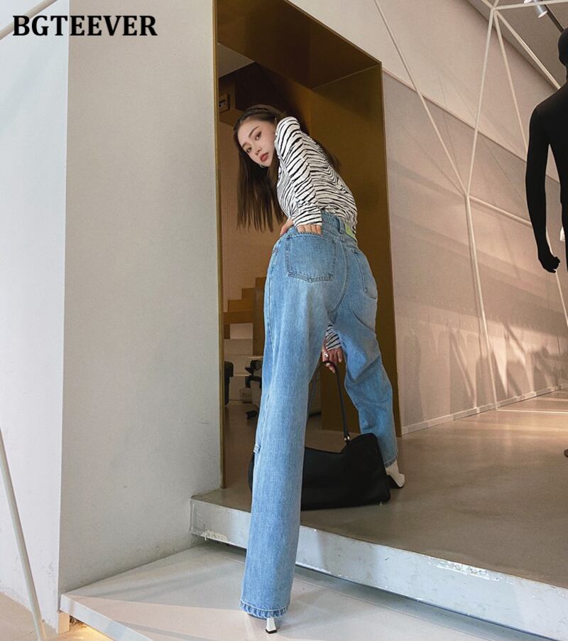 【新作】【送料無料】 BGTEEVERヴィンテージロングストレートレッグデニムジーンズレディース2021スプリングウエストルーズジーンズパンツパンツ 春物 ビンテージ 12b124744893151
