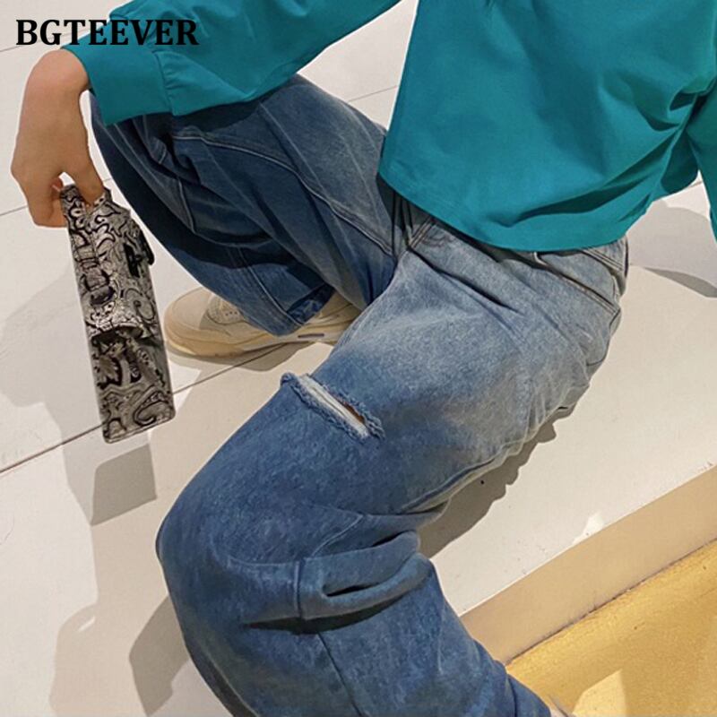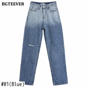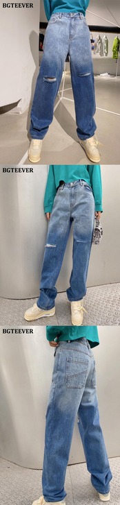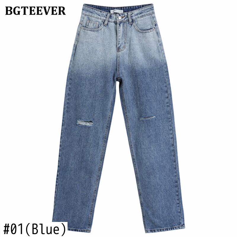 【新作】【送料無料】 レディースグラディエントジーンズウエストルーズワイドレッグ破れた穴デニムパンツヴィンテージジーンズパンツ ワイドパンツ ビンテージ 12b137172334789