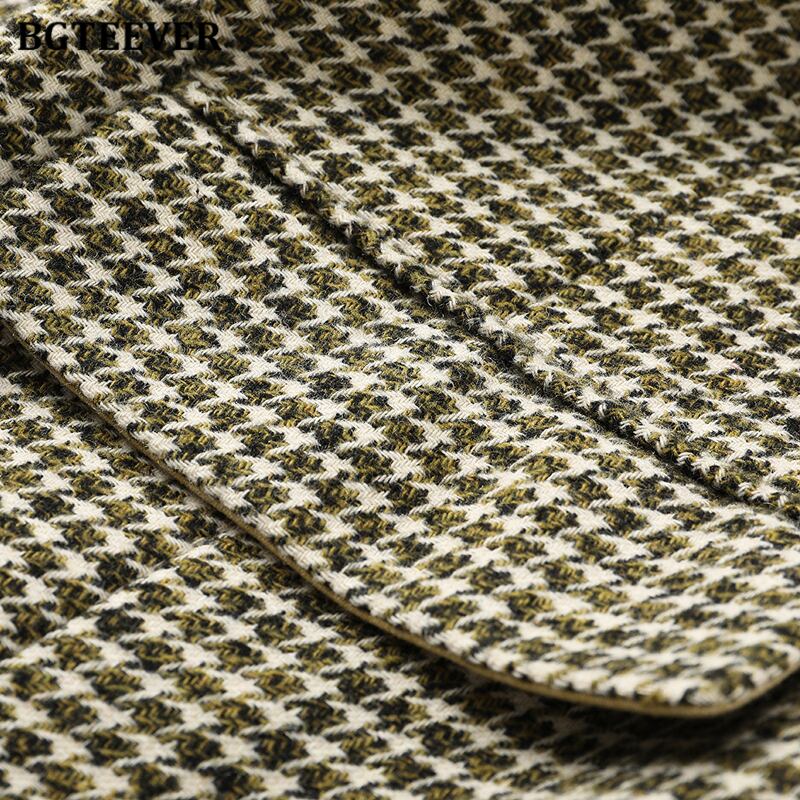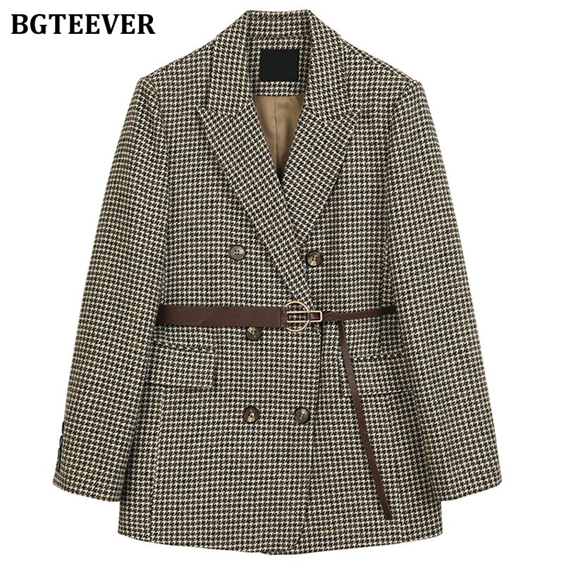 【新作】【送料無料】 BGTEEVERヴィンテージ春ダブルブレスト女性チェック柄ブレザーコート長袖ベルト付きルーズスーツジャケット2021アウター ロング スプリング 春物 ハーネス ビンテージ 12b118359063693