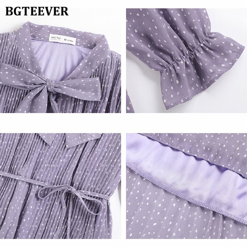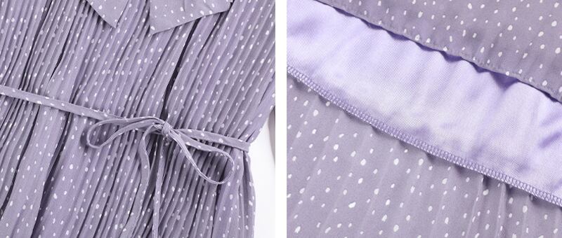 【新作】【送料無料】 BGTEEVERパープルレディースシフォンドレス春のドットプリントレースアッププリーツドレスMidiVestidos 2021 スプリング 春物 12b180721302587