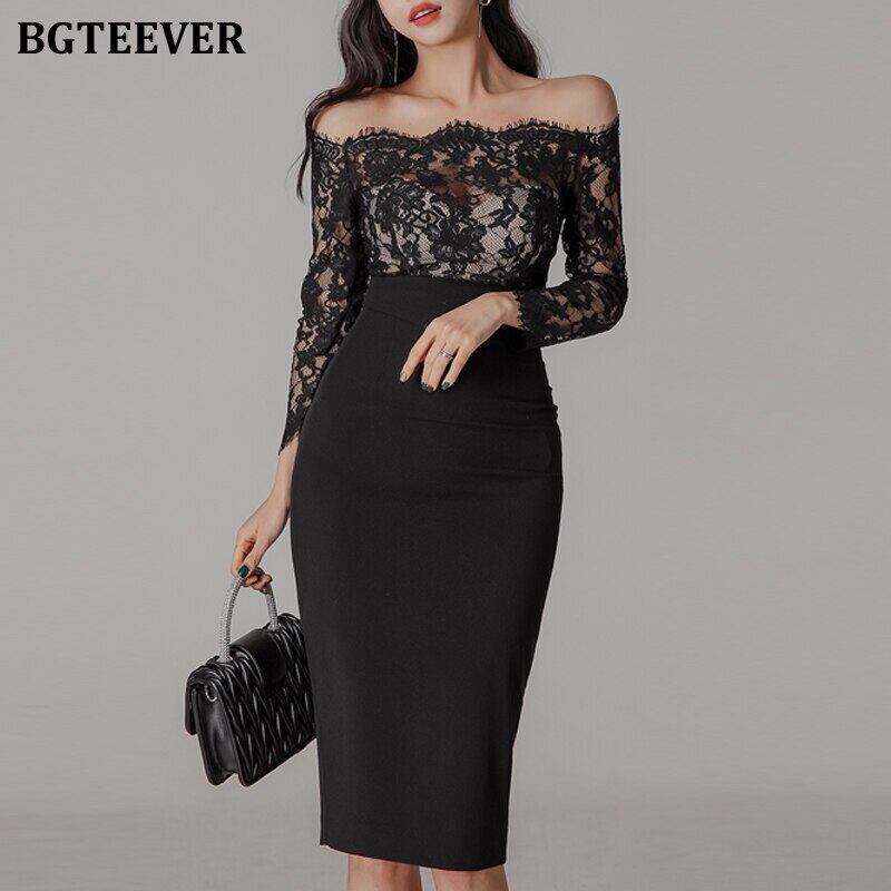 【新作】【送料無料】 BGTEEVERレディースレースパッチワークワンショルダーミディドレスセクシースリムパッケージヒップドレススプリットヴェスティドス 12b143092007396