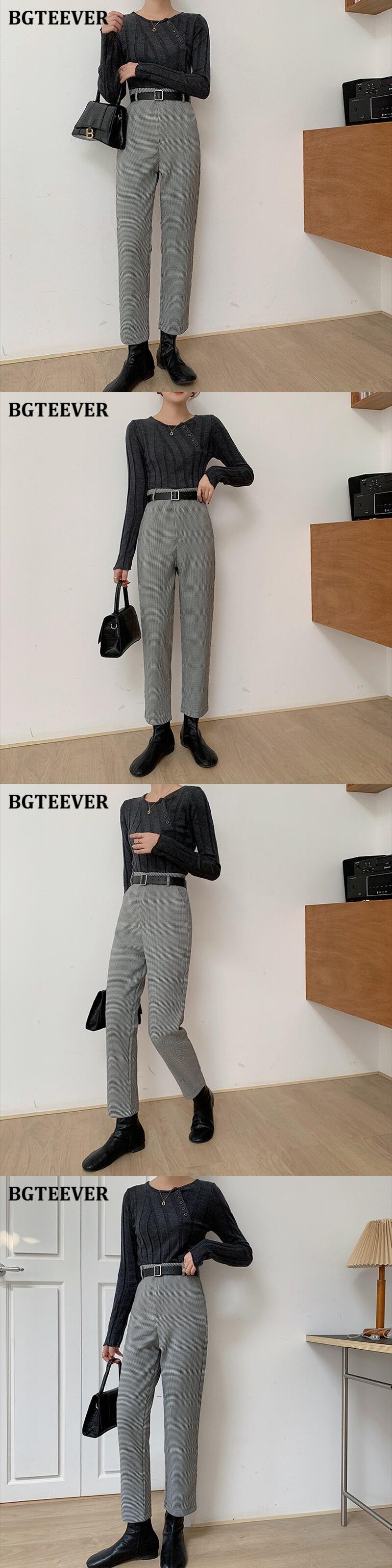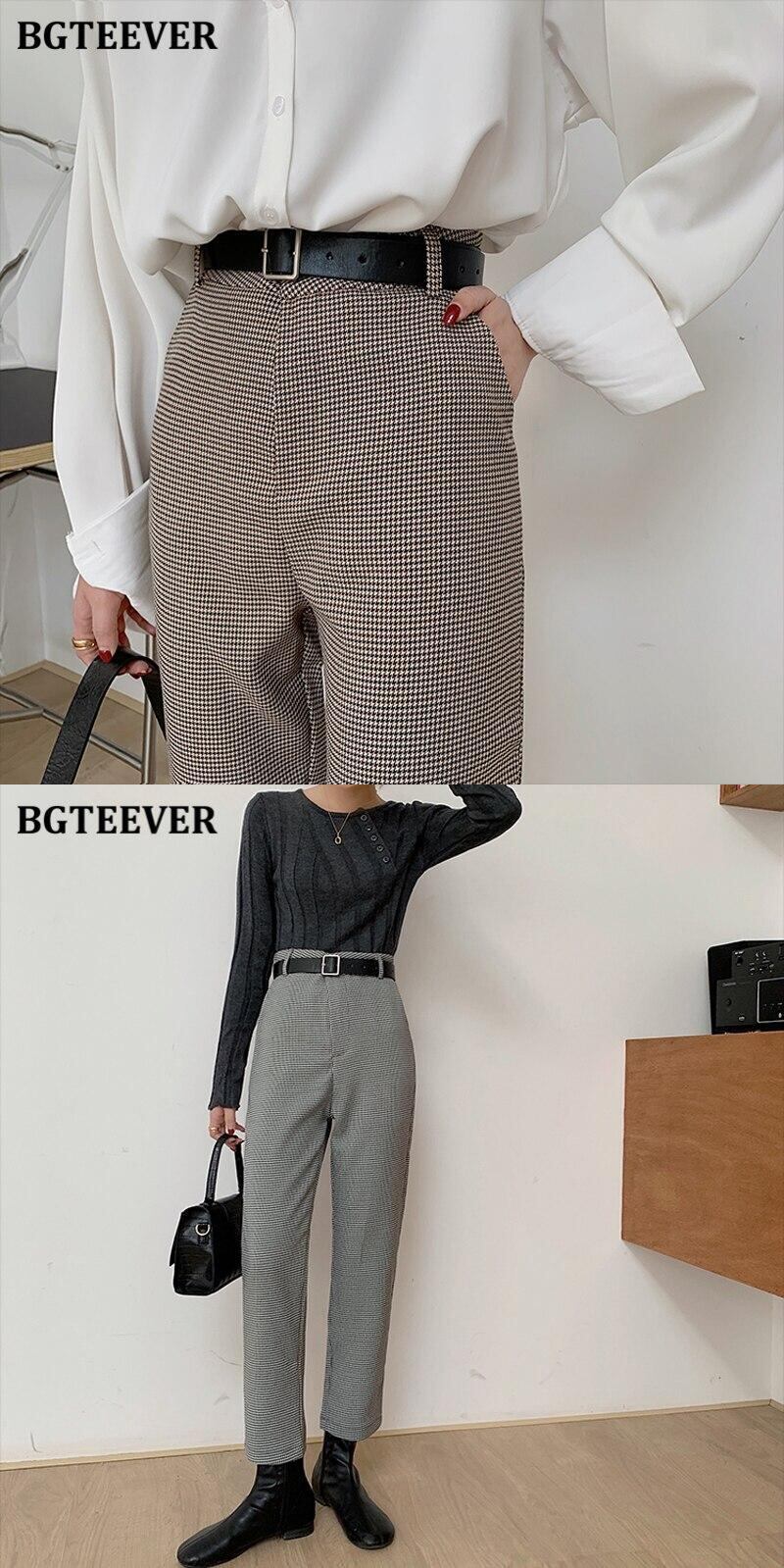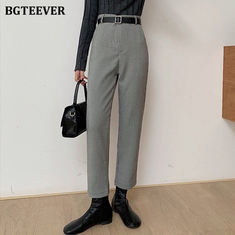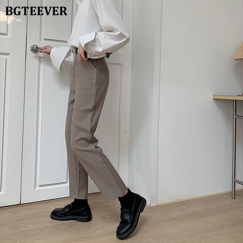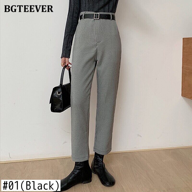 【新作】【送料無料】 BGTEEVER千鳥格子ストレートレッグパンツレディースウエストルーズベルトパンツ2021春パンタロン スプリング 春物 ハーネス 12b159393117668