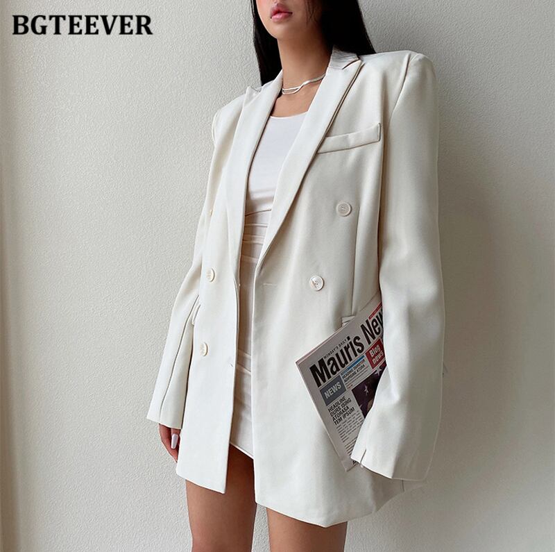 【新作】【送料無料】 BGTEEVERダブルブレストベージュレディースブレザーノッチカラールーズスーツジャケット長袖アウター2021 ロング 12b161468888104