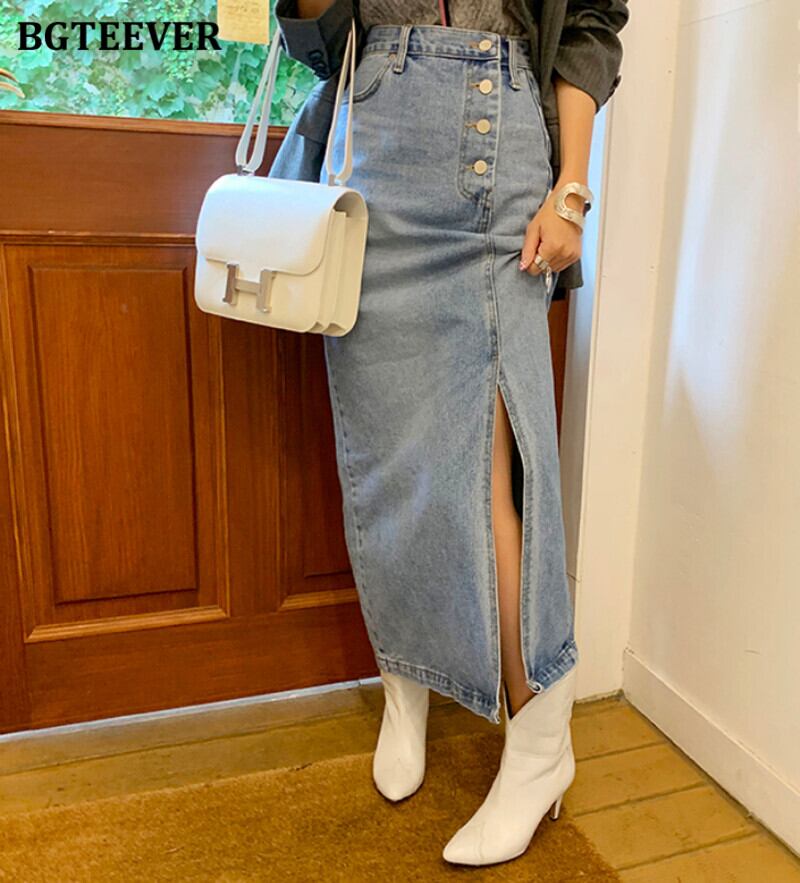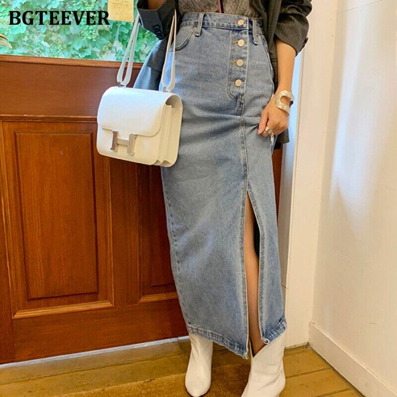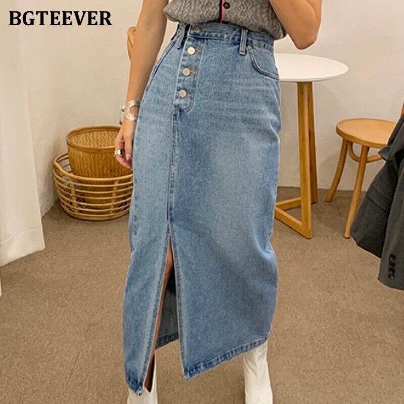 【新作】【送料無料】 BGTEEVERウエストスプリットレディースジーンズロングスカート春シングルブレストパッケージヒップペンシルデニムスカート2021 スプリング 春物 12b189148664231