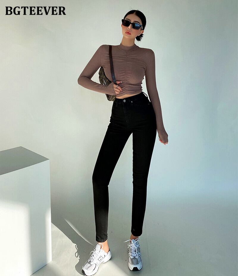 【新作】【送料無料】 春夏スキニージーンズウエスト伸縮性レディースデニムパンツシックなペンシルジーンズ スプリング 春物 サマー 夏物 12b128400850052
