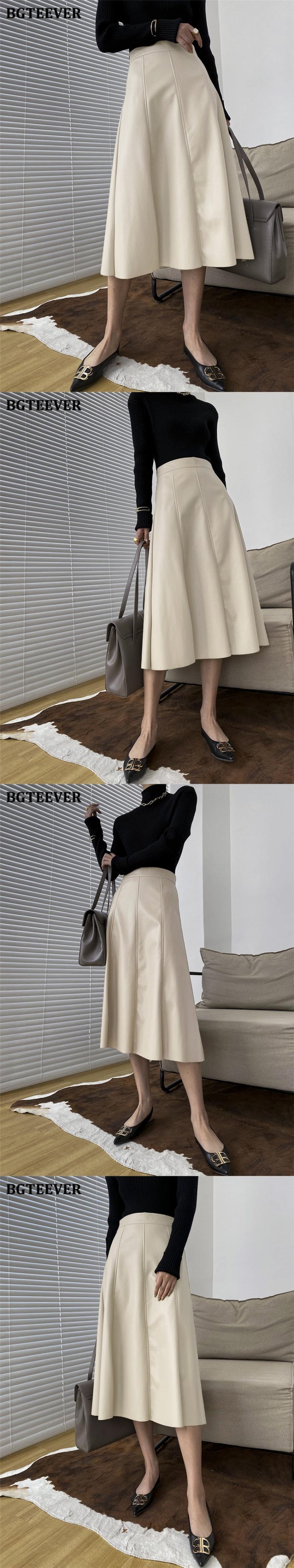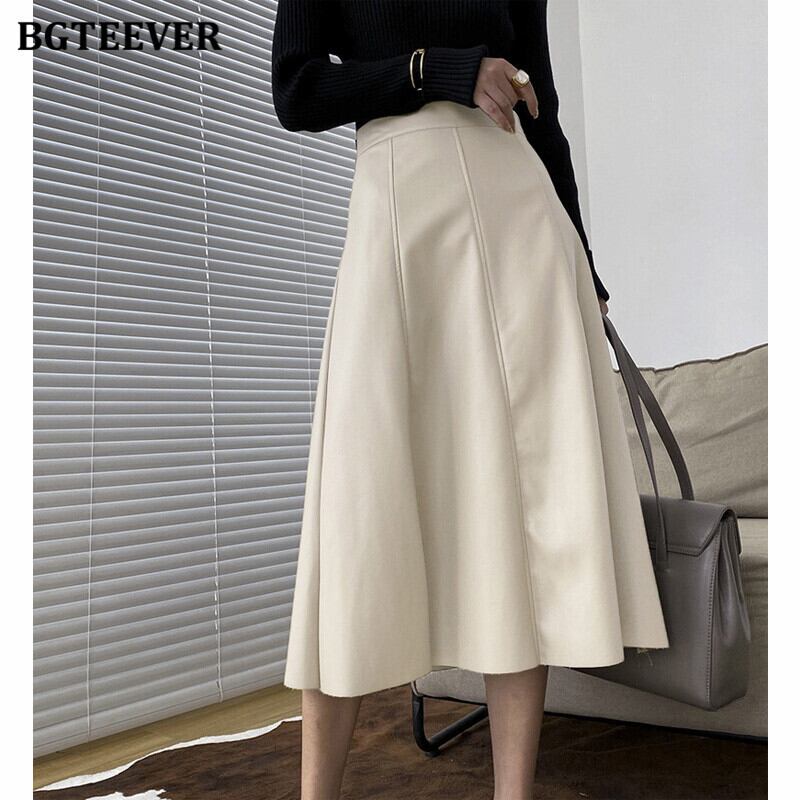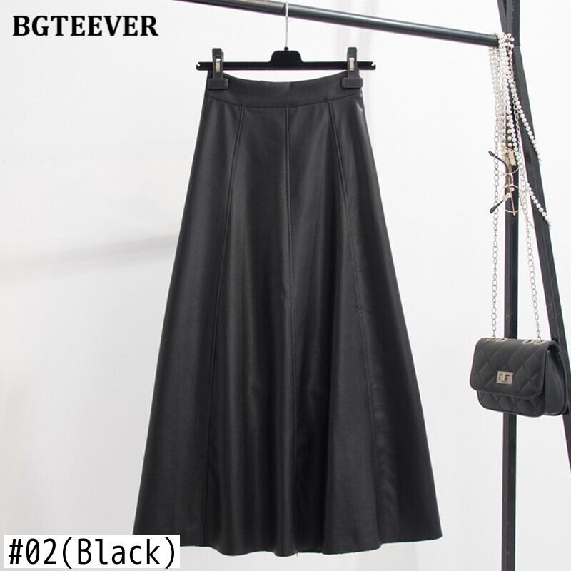 【新作】【送料無料】 BGTEEVERシックウエストフェイクレザーミディスカートレディースウエストルーズAラインスカート2021ソリッドPUスカート ファー ソリッドカラー 12b128922785506