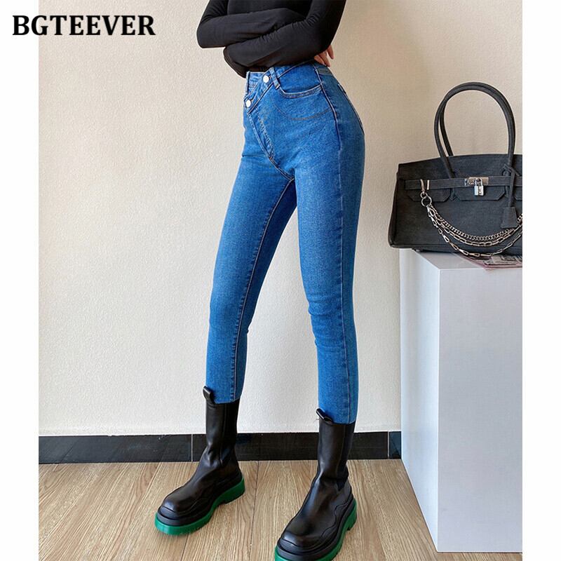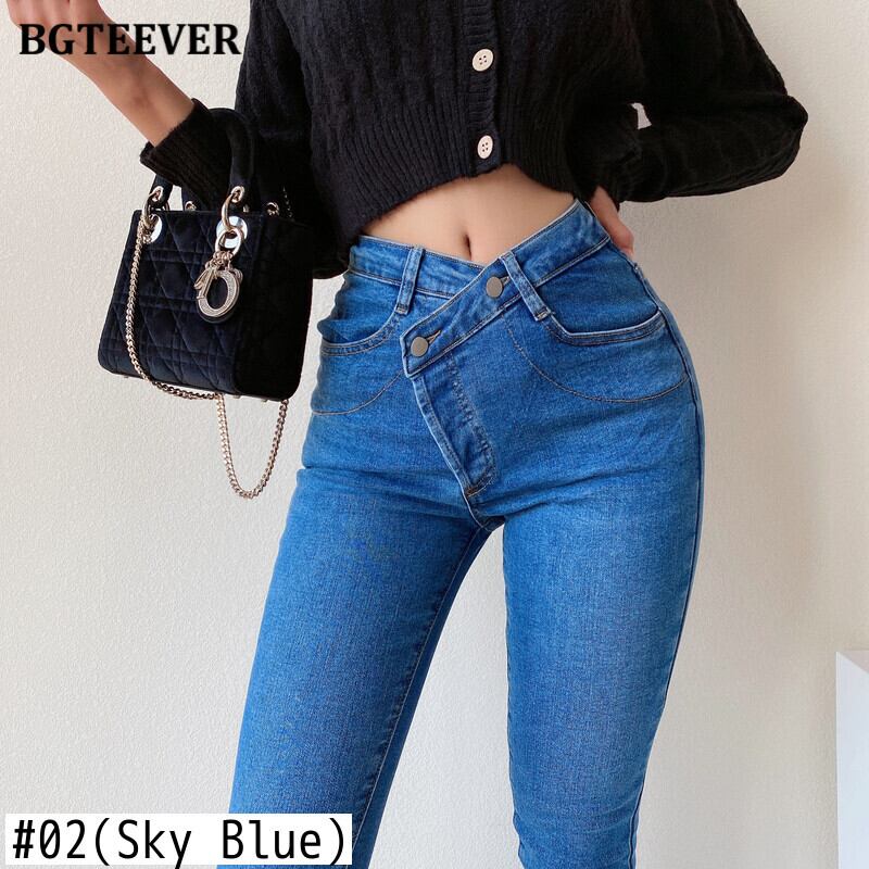 【新作】【送料無料】 ジーンズレディースウエストストレッチヒップスリムフィットスキニーデニムジーンズ斜めバックルペンシルパンツ スリムヒップ 12b158667209007