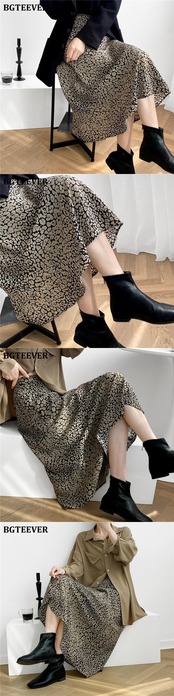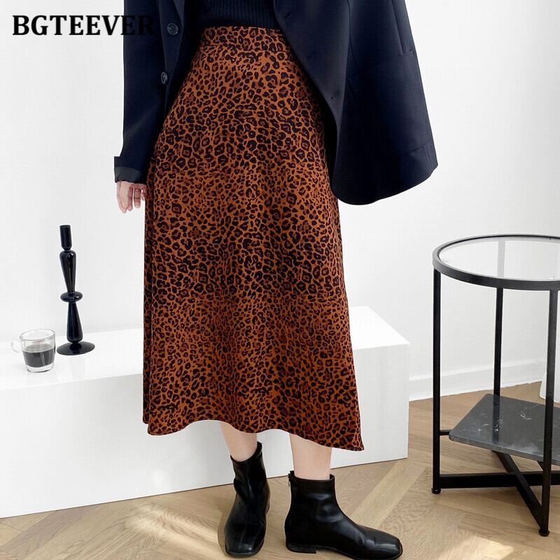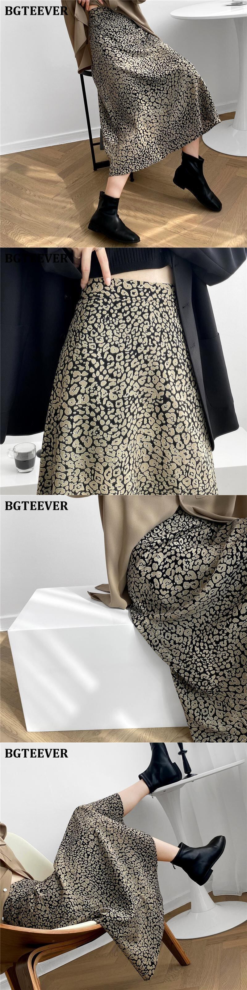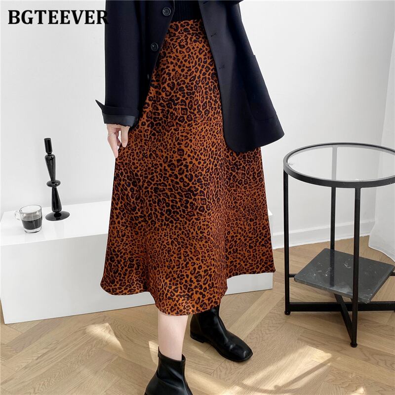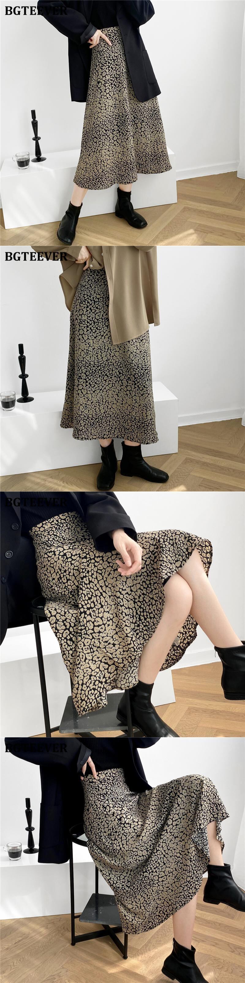 【新作】【送料無料】 BGTEEVERスタイリッシュなルースウィミンAラインスカート2021年春のヒョウミドル丈スカートウエストロングスカート スプリング 春物 12b176401387615