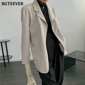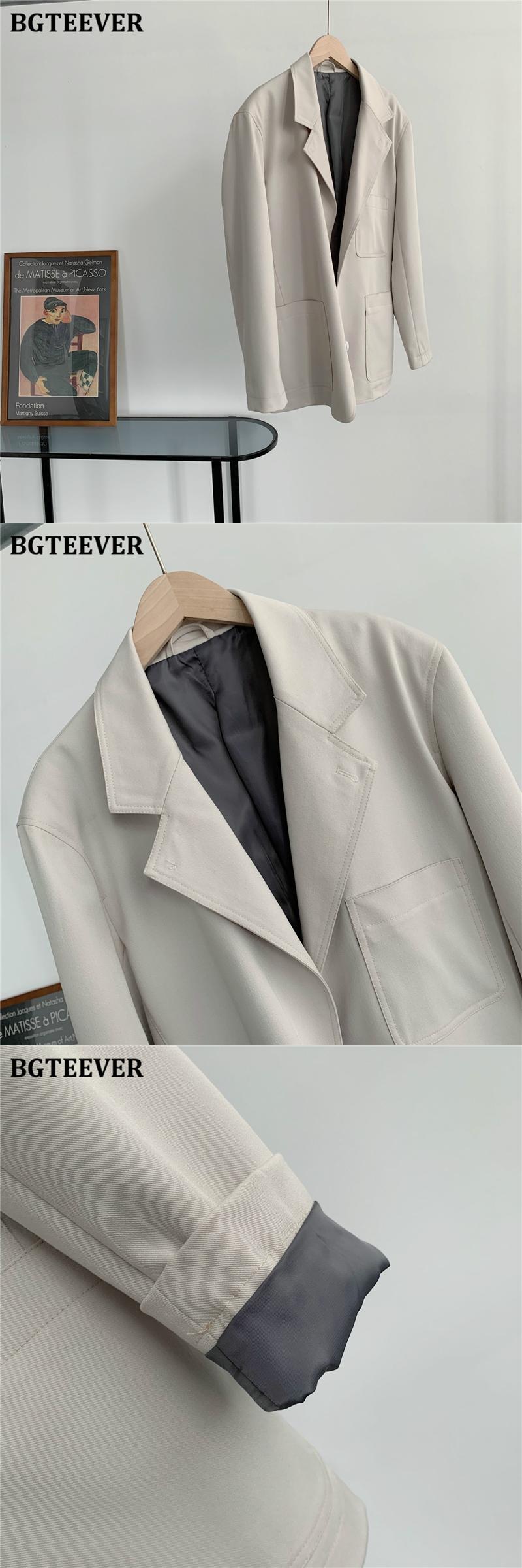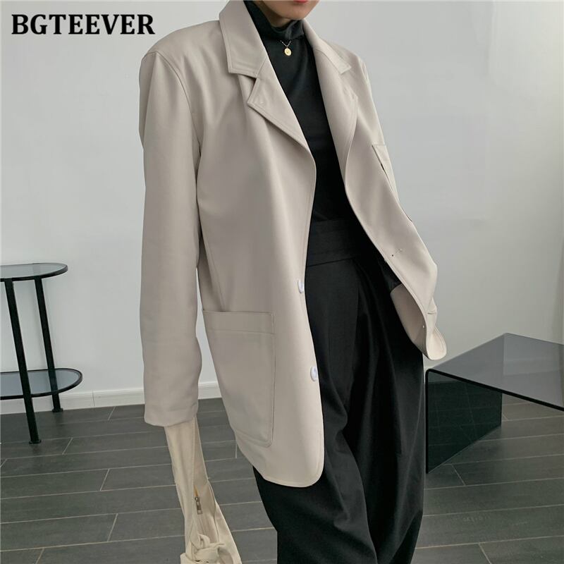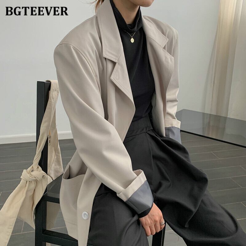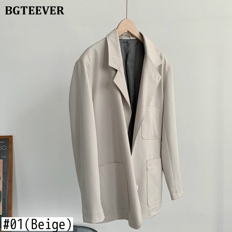【新作】【送料無料】 BGTEEVERポケットノッチカラーレディースブレザー長袖シングルブレストルーズスーツジャケット2021春 ロング スプリング 春物 12b16191277224