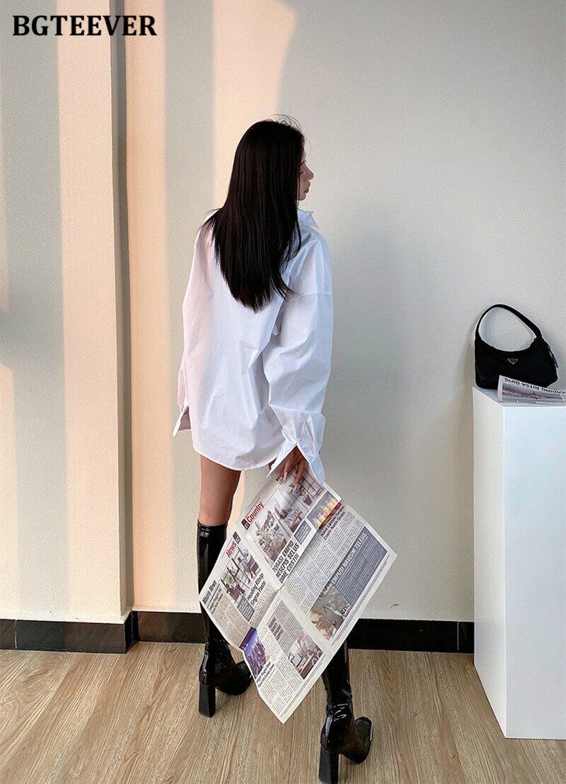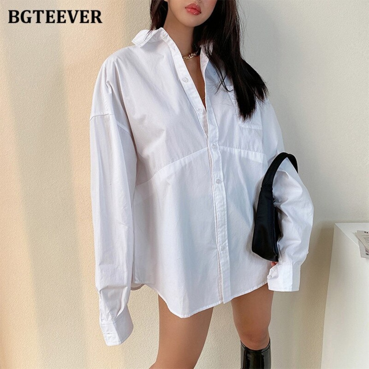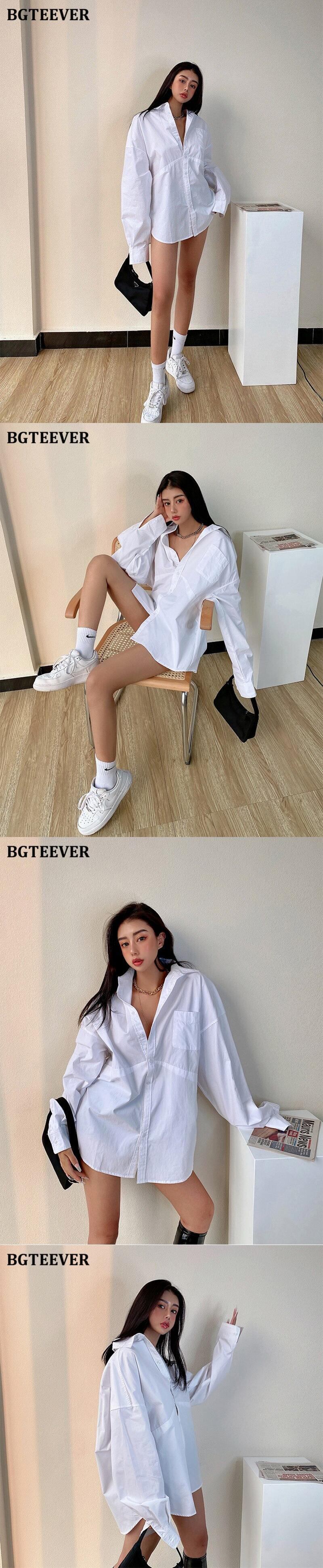 【新作】【送料無料】 特大の女性の白いシャツターンダウンカラーブラウスポケットルーズシャツトップス春夏 ホワイト スプリング 春物 サマー 夏物 12b198313741232