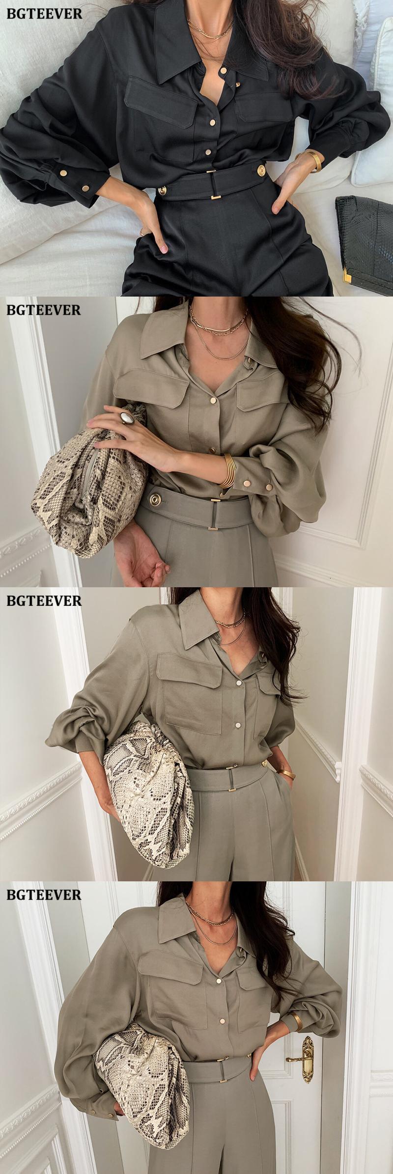 【新作】【送料無料】 BGTEEVERヴィンテージポケットレディースシャツトップスターンダウンカラーランタンスリーブブラウス2021春 スプリング 春物 ビンテージ 12b136693690412