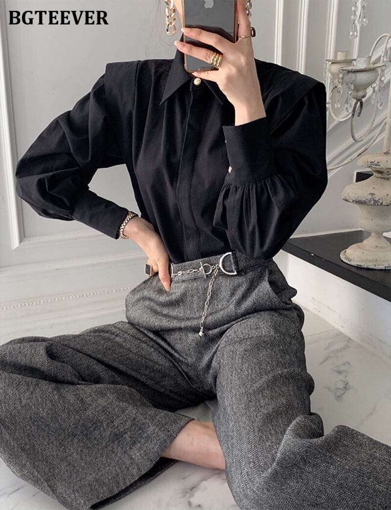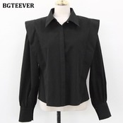 【新作】【送料無料】 BGTEEVERヴィンテージシックルースホワイトシャツブラウス女性2021夏シングルブレスト長袖シャツワークウェアトップス ロング サマー 夏物 ビンテージ 12b158709742370