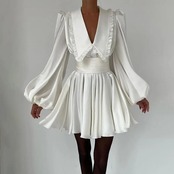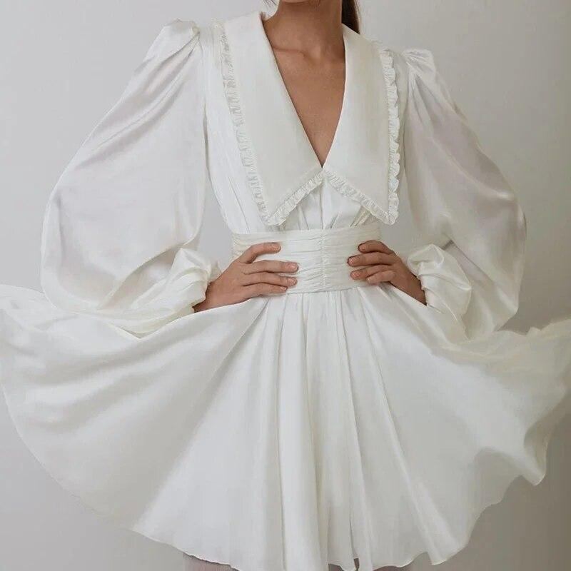 女性のフレンチ宮殿スタイルのカラフルなドレス、ランタンスリーブ、ハイウエストシーリングショートイブニングドレス、春と秋