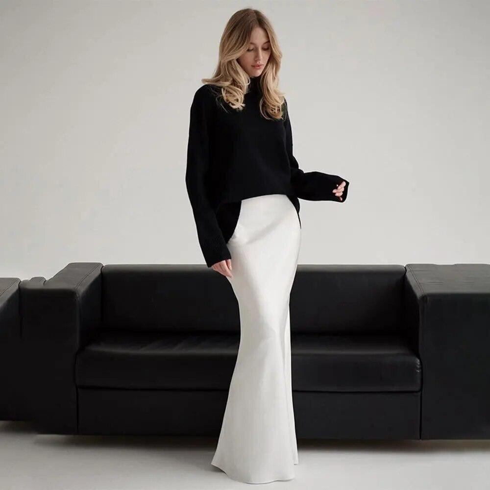 女性用サテンフィッシュテールスカート,ハイウエストスカート,長くて薄いラップ,軽くて贅沢,床,スリム,新製品,春,2022