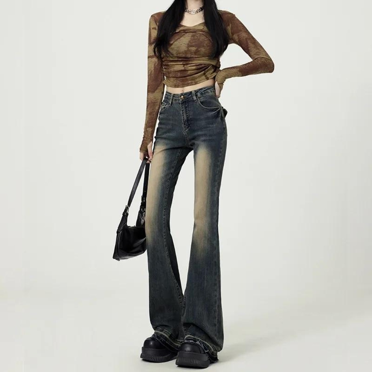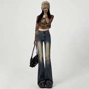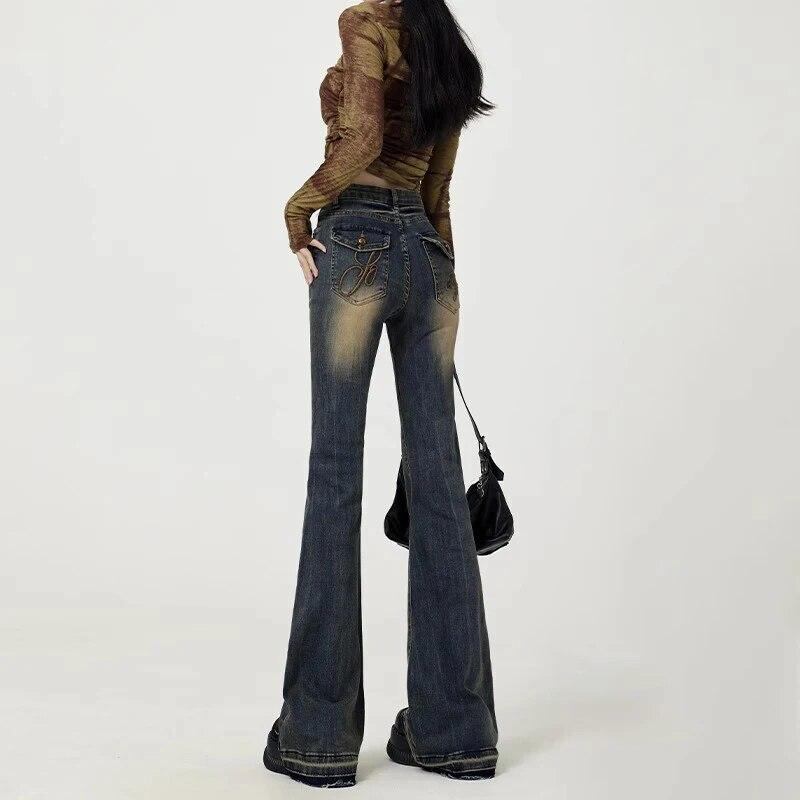 女性のレトロな青い刺繍のマイクロフリンジジーンズ,伸縮性のあるハイウエストのハイウエストシューズジーンズ,アップリケデザイン,春