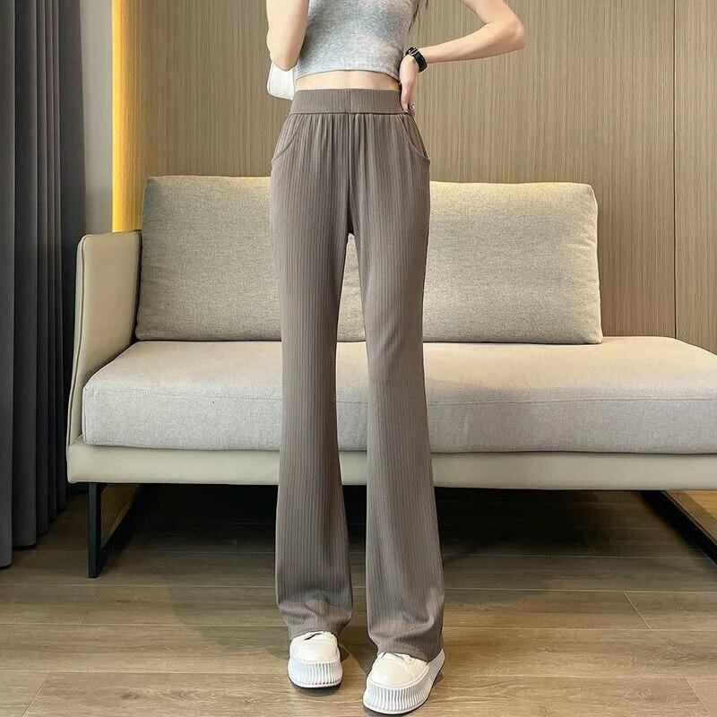 女性用マイクロホーンワイドレッグパンツ、ルーズカジュアルパンツ、ハイウエスト、エラスティックマイクロフレアパンツ、ナローバージョン、春と夏