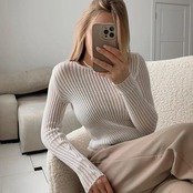ストライプの長袖ニットシャツ,女性用のセクシーなタイトなシャツ,ウールのボタンと首のフラップ,上質な長袖,オリジナルの春と夏