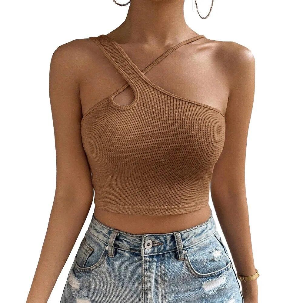 女性のためのきらびやかなバックストラップタンクトップ,スリムフィット,伸縮性,カジュアル,パーソナライズ,中空デザイン,春と夏