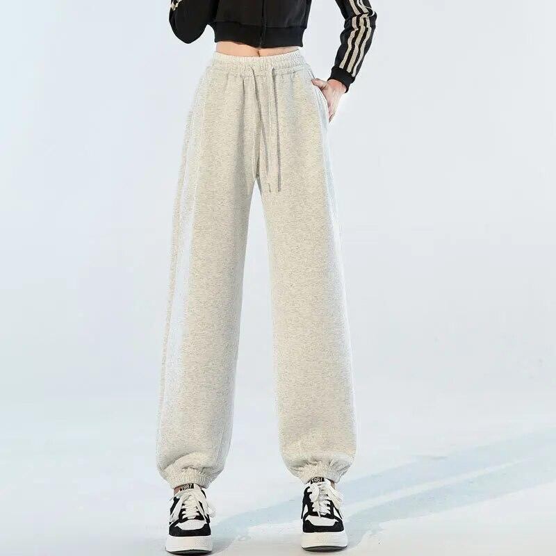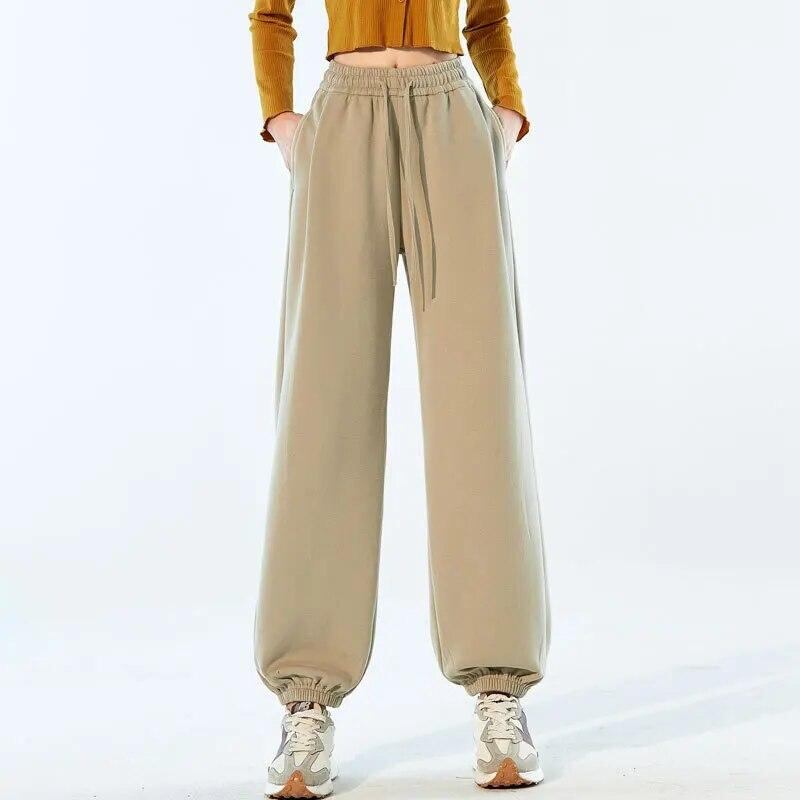 女性のクラシックなアメリカンスポーツパンツ、伸縮性のあるコットン、ハイウエスト、4色、足首の広い脚のパンツ、カジュアルで用途の広い春と夏