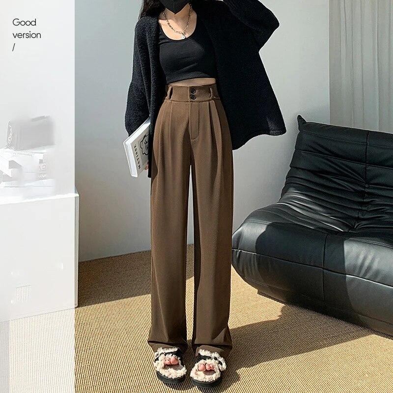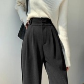 女性用ハイウエストウールパンツ,ワイドレッグ,ルーズエラスティックパンツ,ストレートパンツ,英国スタイル,軽い,春と秋