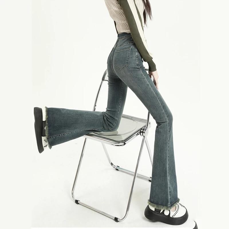 女性のためのレトロなマイクロフレアジーンズ,ハイウエスト,ストリートスタイル,スリム,サロン,コットン,春と夏