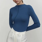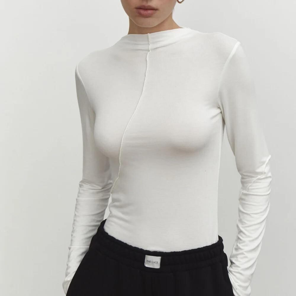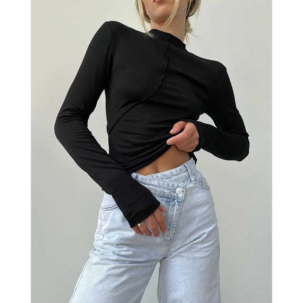 女性用長袖Tシャツ,ラウンドネック,ファッショナブルなエッジ,パッチワークデザイン,伸縮性のあるスリムフィット,新しい春コレクション