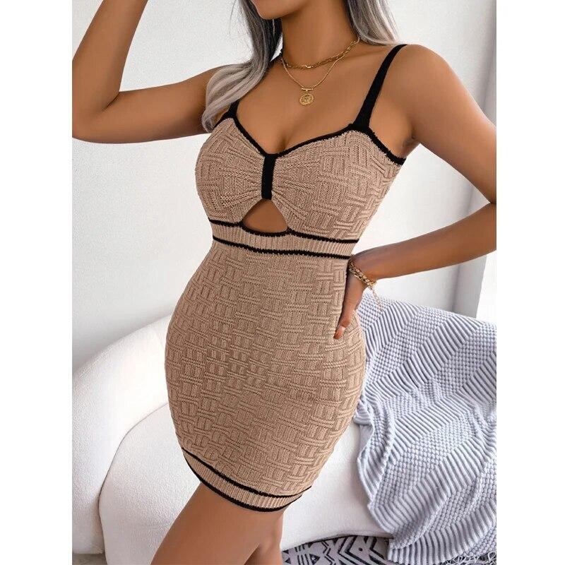 女性のためのセクシーなニットサスペンダードレス,ハイウエスト,コットン,伸縮性,中空デザイン,ヒップの吊り下げ,春と夏