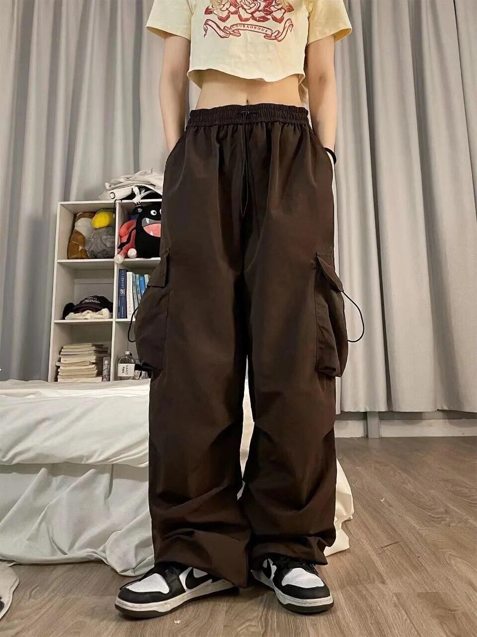 女性のレトロなカーゴパンツ,ストレート,伸縮性,ルーズ,アメリカンカット,多用途,春と夏