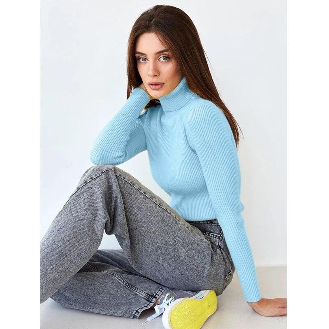 女性の長袖ニットセーター,ハイカラー,Vネック,スリムフィット,ボトム,レトロ,クラシック,秋冬