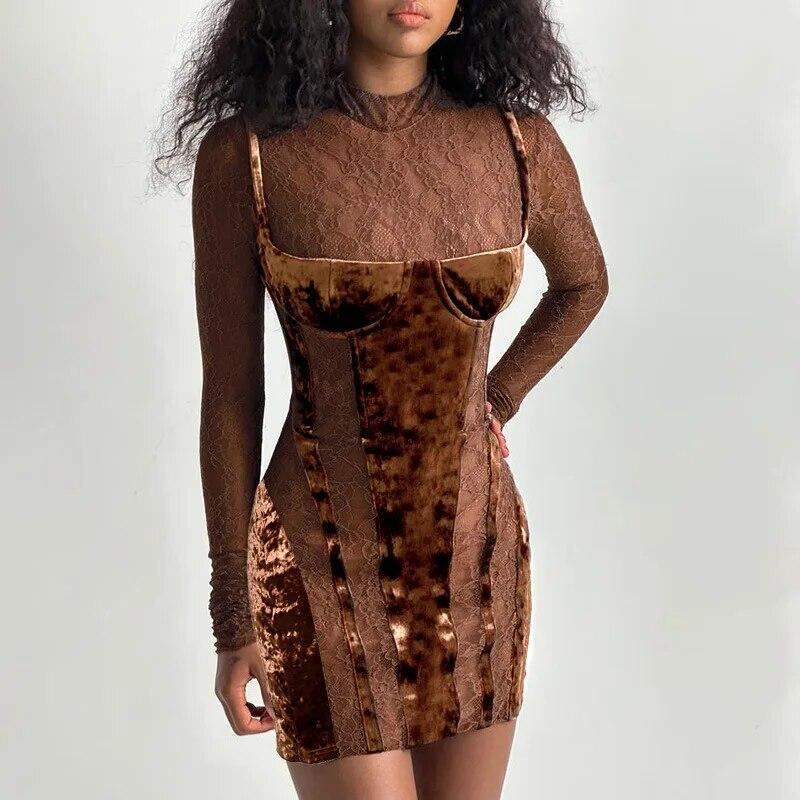 女性用長袖ベルベットドレス,タイトフィット,ゴールドダイヤモンド,臀部カット,レース,透かし彫り,バッグ
