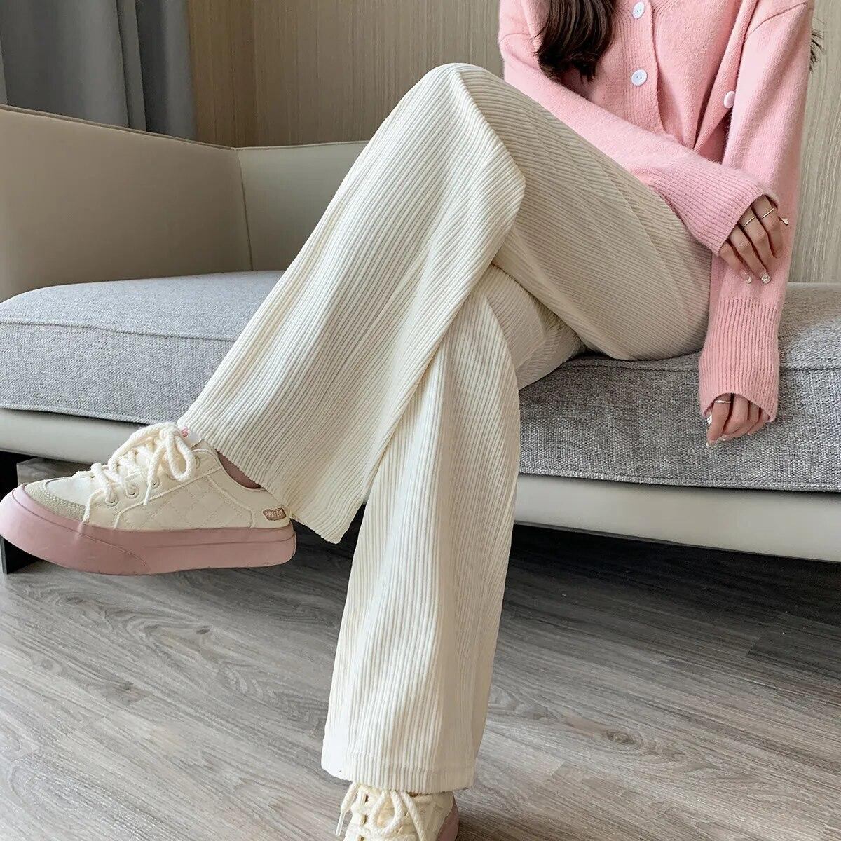 女性用ワイドレッグパンツ,薄手のパンツ,ハイウエスト,伸縮性,オリジナル,ストレートカット,カジュアル,春と秋