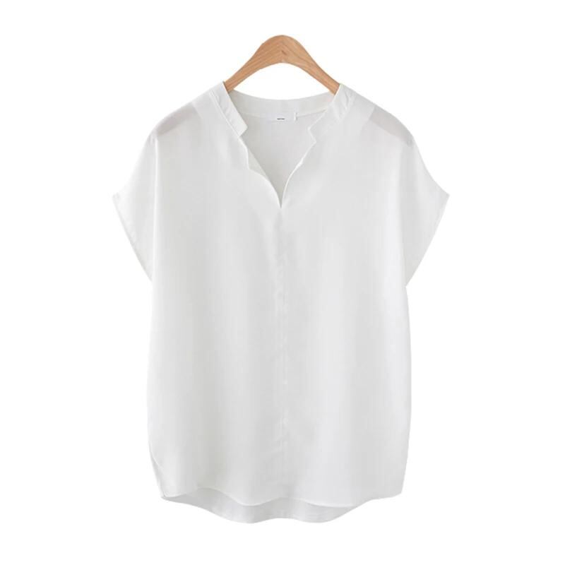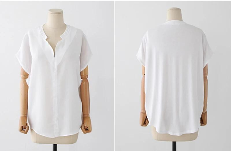 Gidyq-女性用の大きなマッチングTシャツ,無地のシフォンシャツ,韓国のファッション,白いスタンドカラー,夏のノベルティ_31