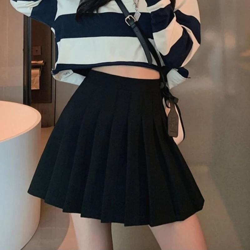 Gidyq-女性用ハイウエストプリーツミニスカート、ライン、ブラック、オールマッチ、韓国プレッピースタイル、プリーツショート、サマーファッション、新品_33