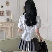 Gidyq-女性のための甘い白いシャツ、韓国のファッション、プレッピースタイル、jk包帯、半袖、女性の夏のシャツ、y2kスリム、エレガントなボウトップ_35