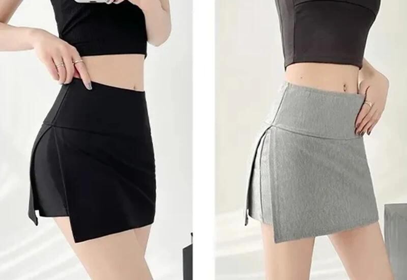 Gidyq-女性の韓国のセクシーな裏地付きヒップラップミニスカート、女性の夏のファッション、ハイウエスト、ラインスポーツスカート、新しい、グレー_38