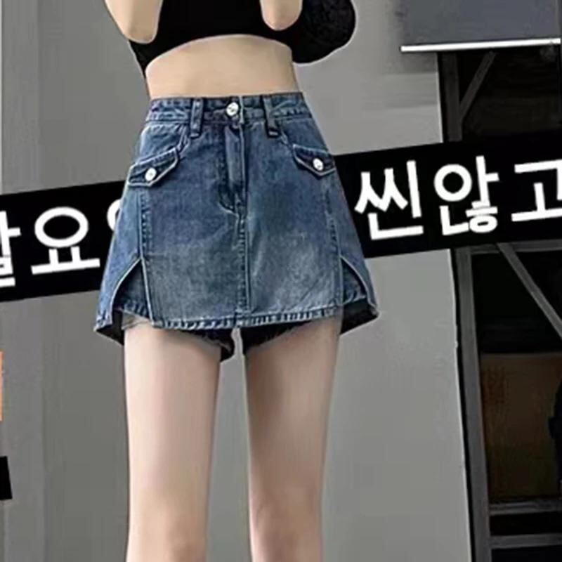 Godyq-レディースデニムショーツ,レトロ,カジュアル,ストリートウェア,スリム,スリット,ハイウエスト,すべてにマッチ_46