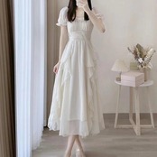Gidyq-女性のためのフリル付きシフォンミディドレス,フランスの四角い襟,半袖,弾力性,スリムフィット,ファッショナブル,夏_52