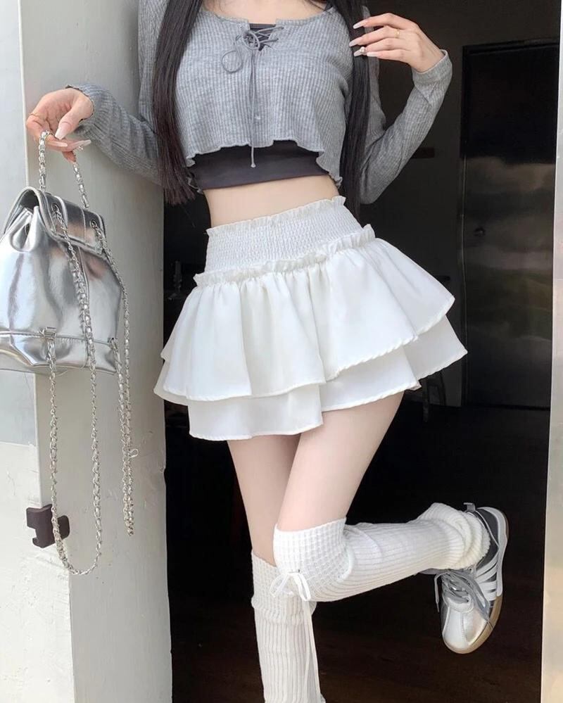 Godyq-女性用の白いバレリーナスカート,韓国のカワイイ,原宿miniスカート,女性用,セクシー,ハイウエスト,ラインボール,新しいコレクション_74