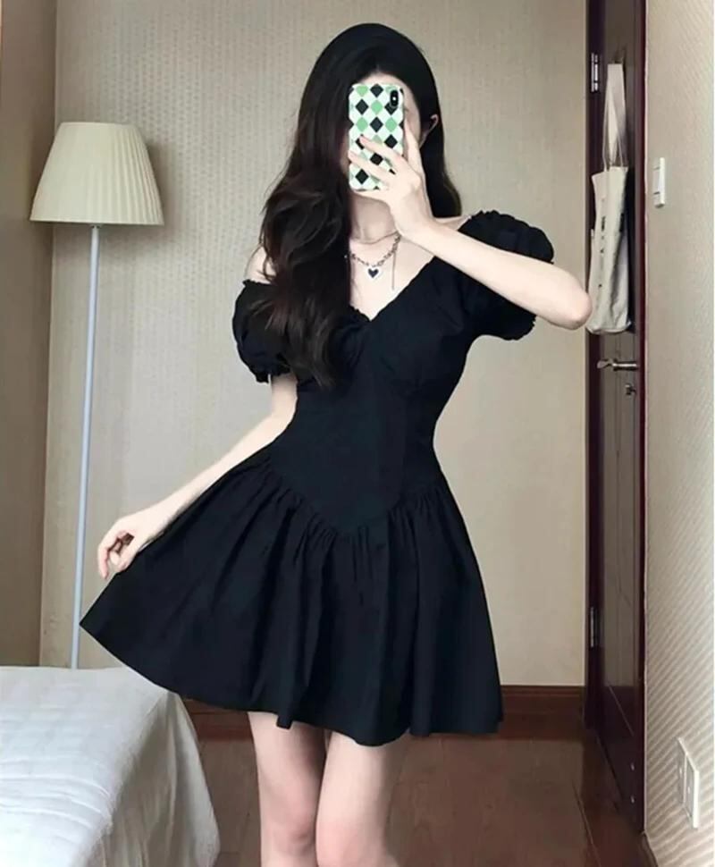 Gidyq-女性用ラインミニドレス,フランス,甘いカワイイ,ハイウエスト,Vネック,プリーツスカート,韓国ファッション,レトロ,夏,新品_76