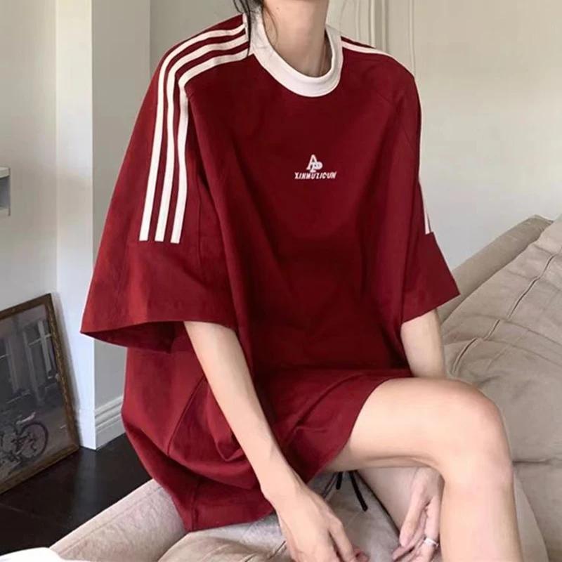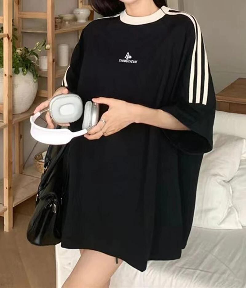 Gidyq-レディース綿100% Tシャツ、ストリートウェア、特大ストライプトップ、夏原宿、韓国ファッション、半袖、ルーズTシャツ_78