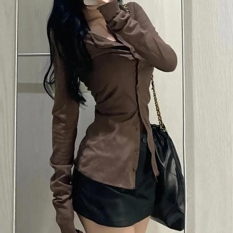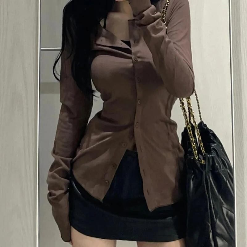 Gidyq-女性のストリートウェアシャツ,韓国のファッション,スリムフィット,長袖トップス,y2k,カジュアル,すべてのマッチ,無地,秋,新品_80