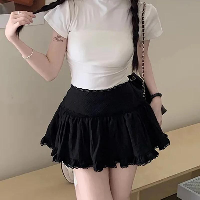 女性用スリムハイウエストミニスカート,韓国のストリートウェア,レースパッチワーク,短いプレッピースタイル,甘い夏のファッション,y2k_106