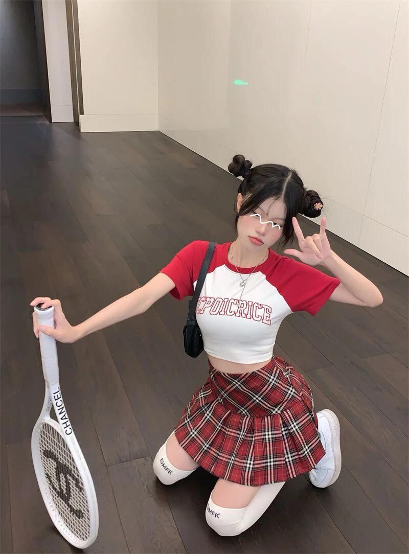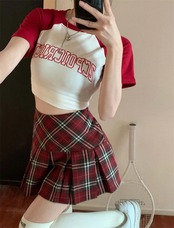 Gidyq-女性のためのレトロな赤い市松模様のプリーツスカート、韓国のプレッピースタイル、原宿ミニスカート、ハイウエスト、シック、a-line、jk、夏_111