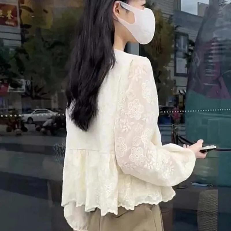 Gidyq-レディースレースカーディガン、ルーズシャツ、オールマッチ、長袖トップス、韓国、エレガントなプリント、カジュアル、レディースファッション、y2k、春、新品_113