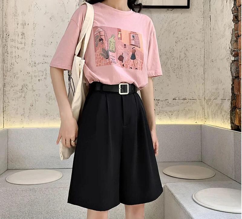 Gidyq-女性用ハイウエストショーツ,ルーズフィット,韓国のファッション,カジュアル,すべてにマッチ,ワイドレッグ,無地,ストリートショーツ_114