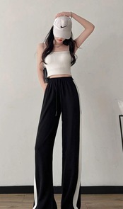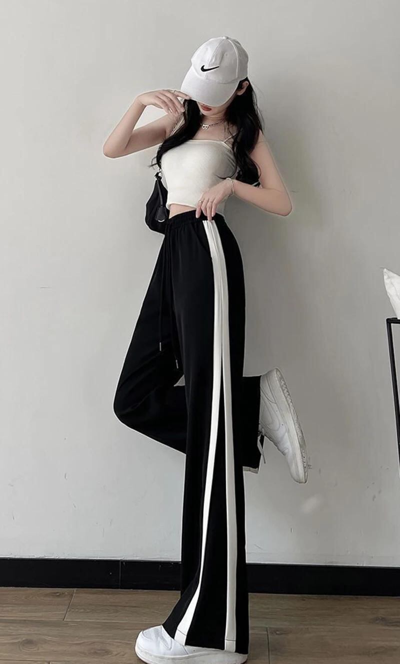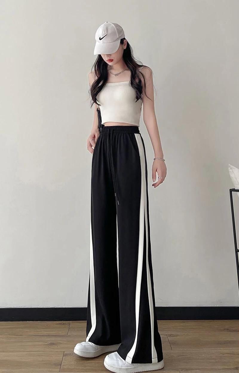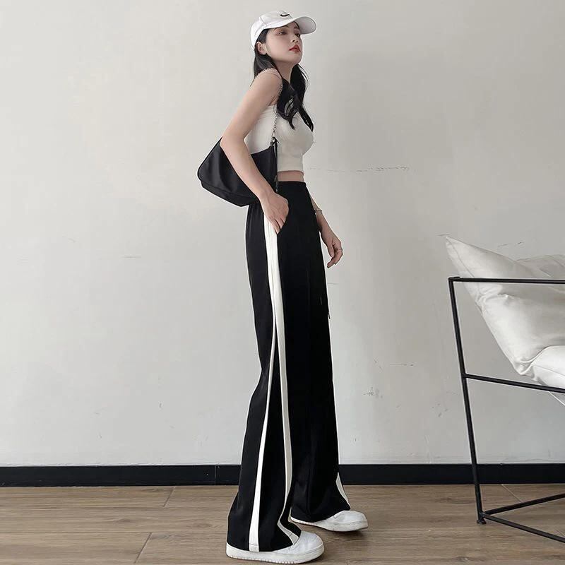 Gidyq-女性の縞模様のワイドレッグパンツ、ハイウエストスウェットパンツ、すべてマッチングストリートウェア、カジュアル、パンツブラック、韓国のファッション、ルーズ_117