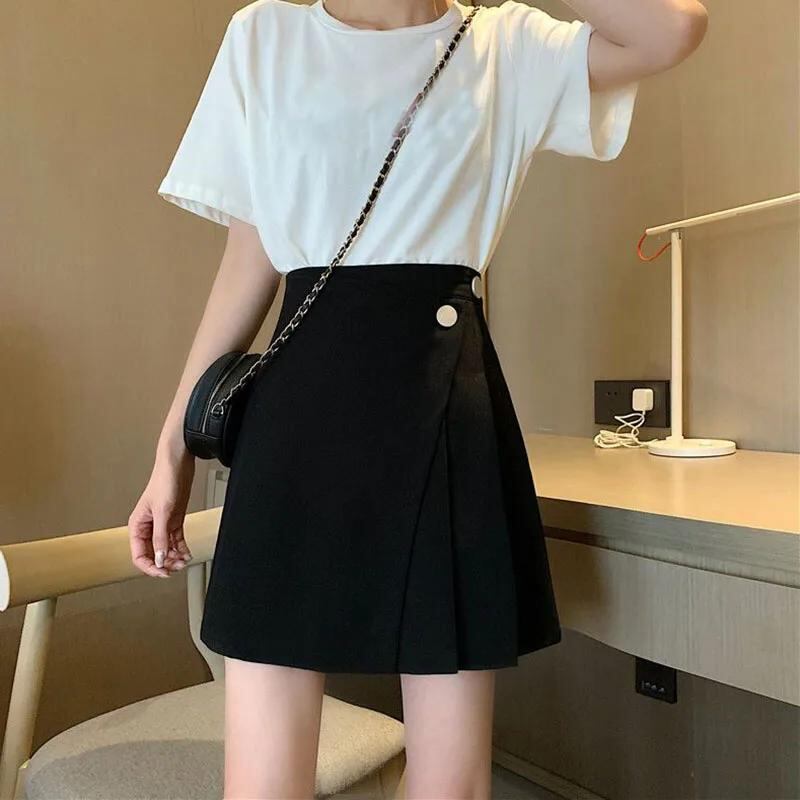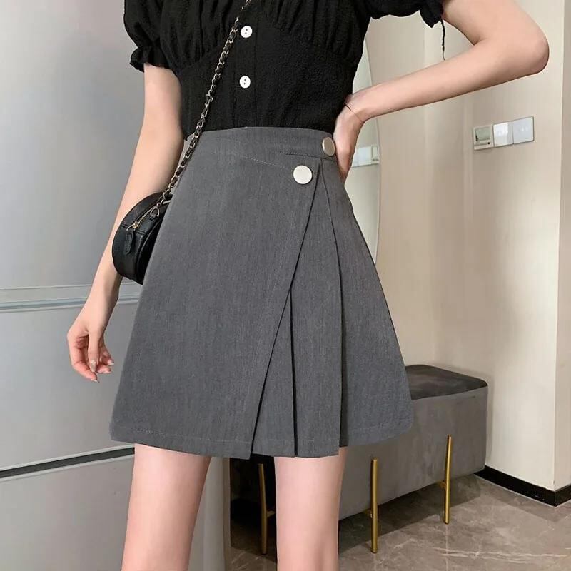 Gidyq-女性の韓国のラインミニスカート、非対称、プリーツ、単色、シンプル、ハイウエスト、夏のファッション_130