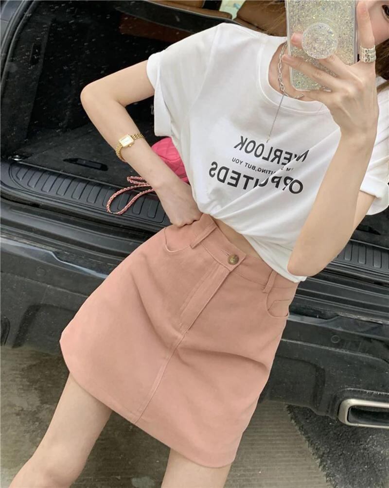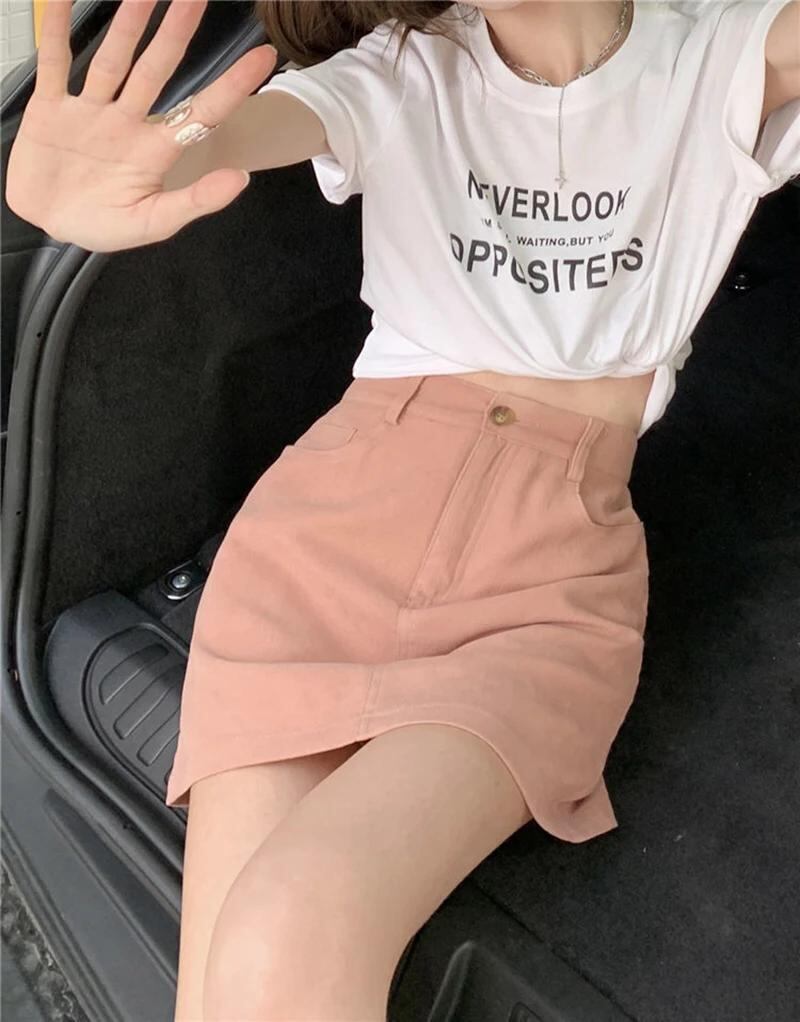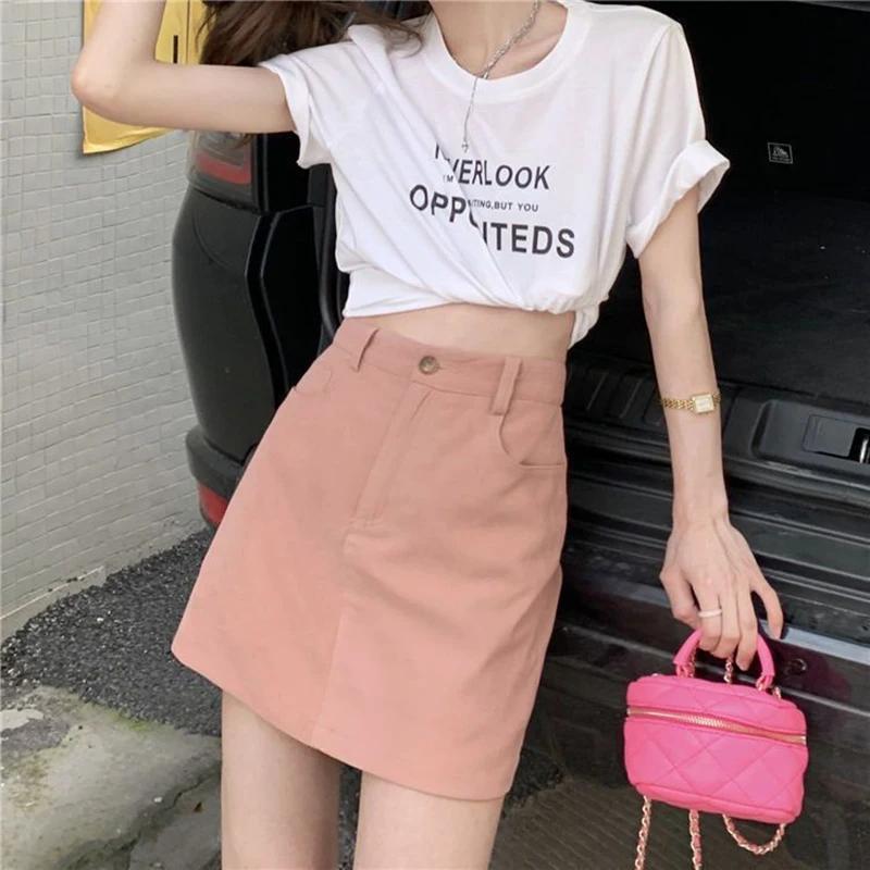 Gidyq-ピンクのミニスカート,ハイウエスト,韓国のファッション,シック,ライン,ソリッド,カジュアル,甘い,ショーツ,女性,夏,新品_135