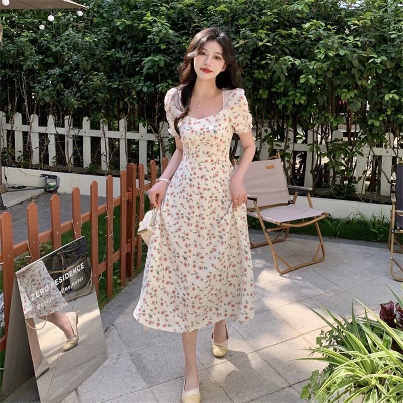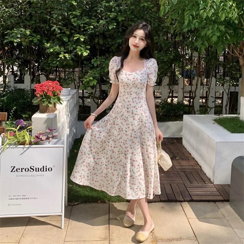 Gidyq-レディースレーススプライススクエアネックドレス、甘いカワイイドレス、フランスのファッション、エレガントなプリント、レトロ、夏、y2k_147